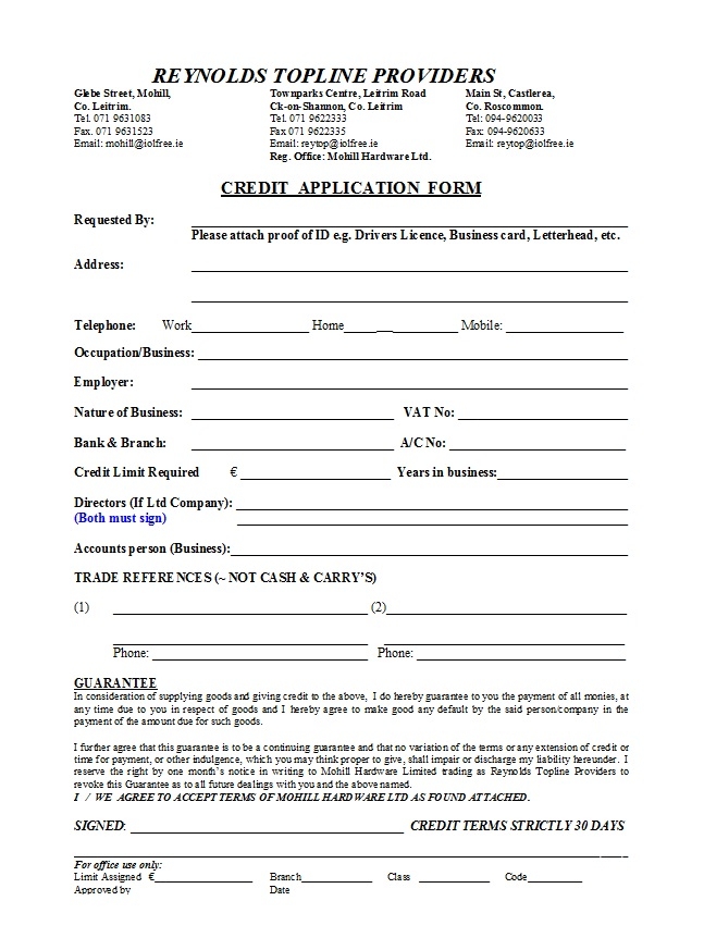 Credit Application Form Template 11
