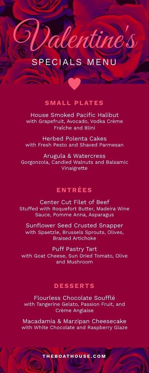 Valentine’s Day Specials Half Page Menu